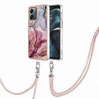 Dual-Side Electroplated Marble Phone Case with Lanyard for Moto G14