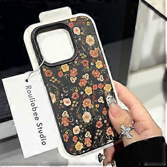 Case For Iphone 13 Branch Small Floral-lychee Pattern-smart Black Clear Floral Leather Medium No3272