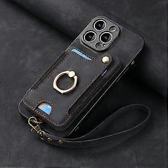 Case For Iphone 13 Pro Black With Leather Lanyard Anti-theft Brush Ring Buckle Lanyard Multi-funct No10821
