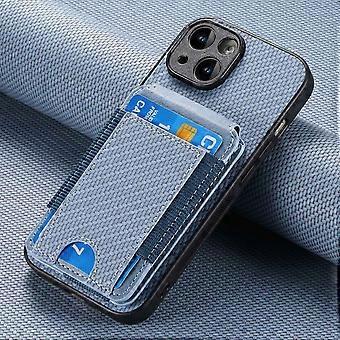 Case For Iphone 13 Mini Black Multi-angle Bracket Carbon Fiber Texture Card Slot Sticker Fine Hole P No6772