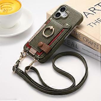 Case For Iphone 13 Mini Midnight Green Crossbody Long Lanyard Card Storage Leather Anti-fall No7961