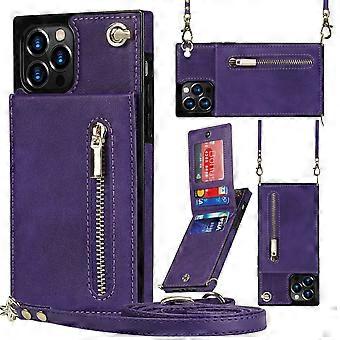 Case For Iphone 13 Pro Max 6.7 Purple Crossbody Zipper Leather Card Slot No13075