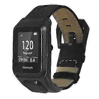 Compatible For TomTom Runner 3 / Adventurer Genuine Cow Leather Band Electroplating Buckle Watch Strap with Case