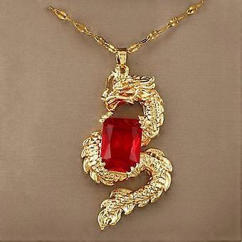Copper micro-inlaid zircon hip-hop loong ruby pendant necklace temperament light luxury niche design.