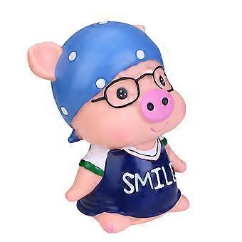 Creative Blue Pig Shaped Piggy Bank for Coin Storage Made of Plastic Perfect for Kids and Home Desks 6.5 inches