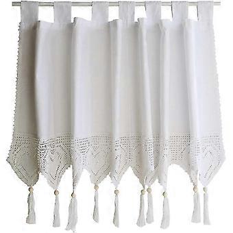 Crochet Window Valance Curtain Elegant Cotton Curtains with Tassel Light Filtering Top Tab Decorative Window Valances for Living Dining Room Cafe