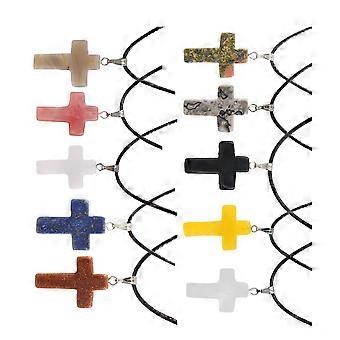 Cross Shape Stone and Alloy Pendant Set for Jewelry Making Crafts Assorted Color