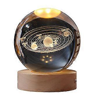 Crystal Color Night Light with Carved Crystal Ball Inside, Luminous Ornament, Starry Gift with Wood