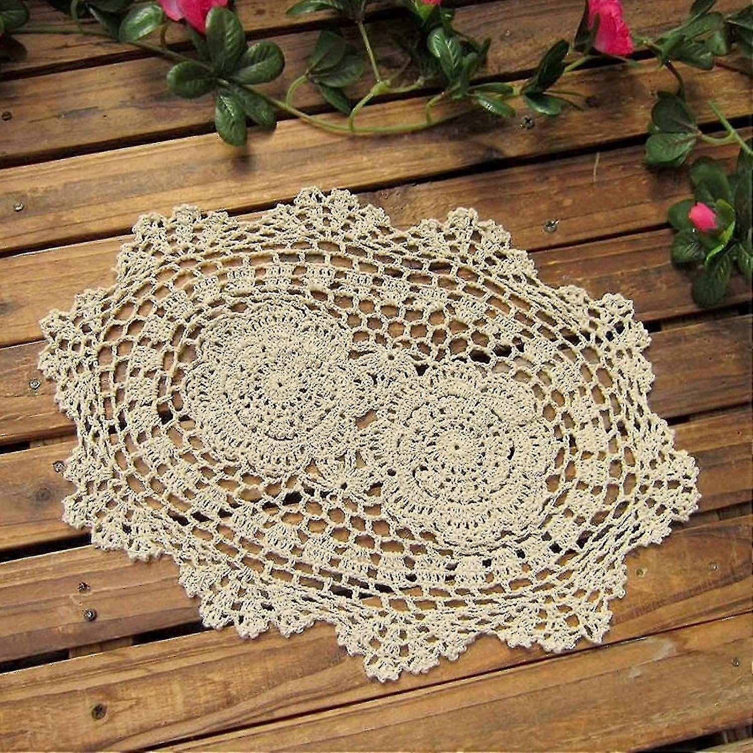 Lace Doilies Handmade Crochet Placemats Cotton Doilies Cloth Lace, Pack Of 4, Oval Shape, 10 X 14 In