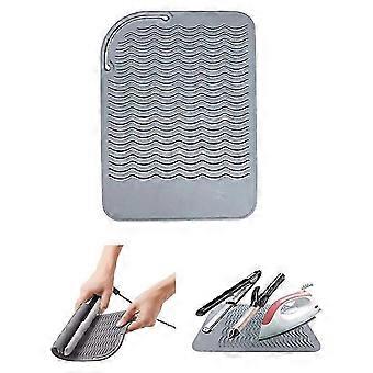 Curved hair straightener and styling tools with heat-resistant mat 9 'x 6.5', gray