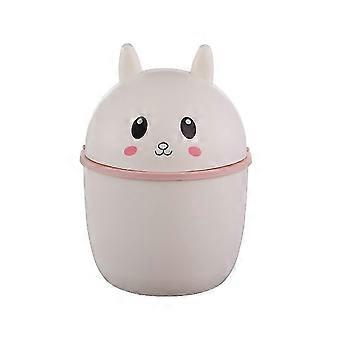 Cute Mini Desktop Bunny Storage Bin with Swing Lid - Adorable Wastebasket for Office, Student Dormitory, and Bedside Use
