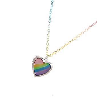 Dainty Heart Pendant Necklace with Colorful Rainbow Link Locket Design, Lightweight Iron Chain, Safe Smooth Edges for Daily Wear and Party Gifts