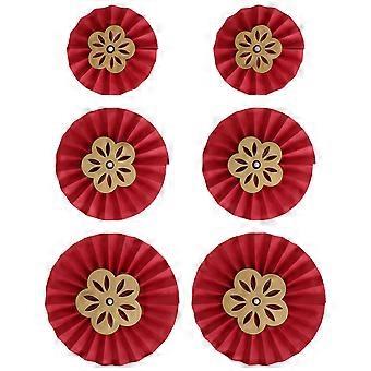 Decorations Paper Fans 6Pcs Red 34.5x34.5cm For Wedding And Home