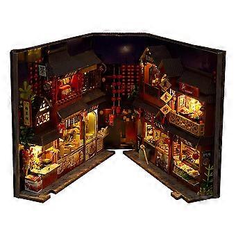 Book Nook DIY Wooden Bookend Puzzle Kit with LED Light, 3D Miniature Bookshelf Decor