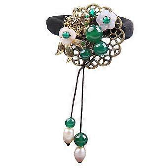 Decorative Hair Tie Vintage Ponytail Holder Jade Hair Loop Hanfu Headdress Multi .72X1.97X1.97in Elastic 1Pc