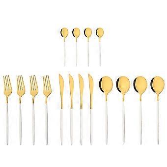 Dinnerware Set White Gold Dinner Cutlery Set Stainless Steel Flatware Fork Spoon Tableware Set