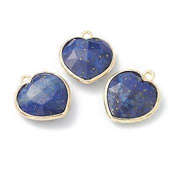 Natural Lapis Lazuli Pendants with Golden Brass Edge Faceted Heart 19x16.5x6~6.5mm Hole: 1.6mm