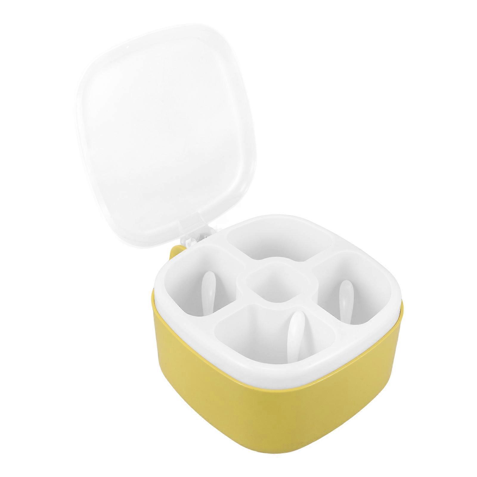 Divided Kitchen Spice Box Container For Household Use In Light Yellow Plastic With Space Saving Function 5Set