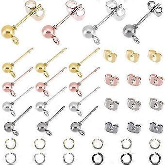 Diy 120pcs 4 Colors Ball Post Stud Earrings With Loops With 120pcs Open Jump Rings Iron Stud Earring With Earring Backs Hypoallergenic Mixed Color Stu