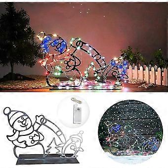 Diy Playful Animated Snowman Snowball Fight Christmas Decoration Lights, Outdoor Glowing Snowman String Lights