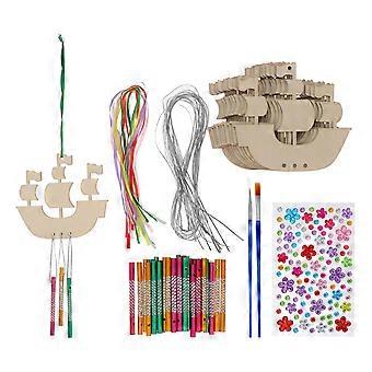 DIY Sailboat Wind Chime Kit for Kids Wooden Craft Complete Set for Daily Use Khaki Color 1 Set