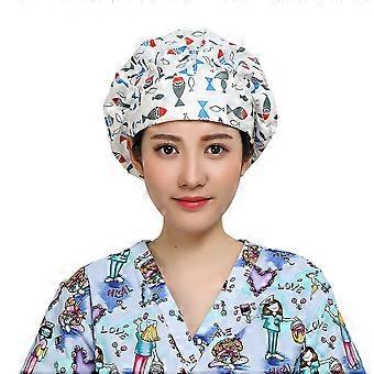 Doctor Cap Cotton Fish Printed Strap Working Hat for Nurses
