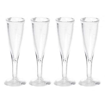 Dolls House 4 Empty Champagne Flutes Glasses Miniature Pub Bar Accessory 1:12