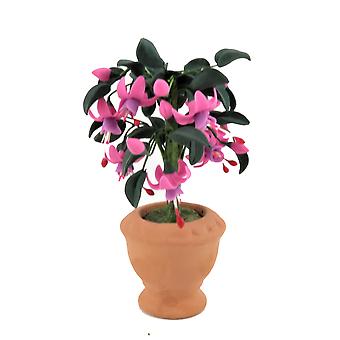 Dolls House Standard Pink Fuchsia Tree Bush In Terracotta Pot Garden Accessory