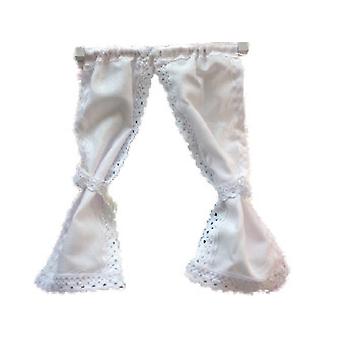 Dolls House White Curtains On Rail Tied Back Miniature 1:12 Scale Accessory