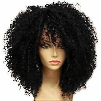 Short Fluffy Afro Kinky Wig, Synthetic Hair, Yaki Straight Texture, 8 Inch (20 cm), Color 1B