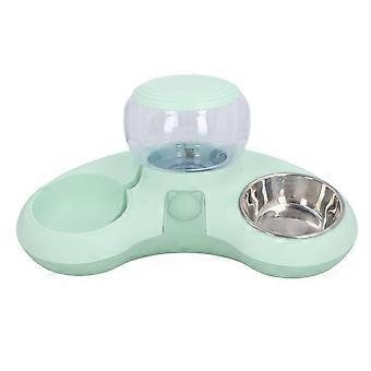 Double Cat Bowls Pet Food and Water Bowl Set Tilted Raised Cat Bowls with 1.4L Automatic Water Dispenser for Cats Small Dogs Green