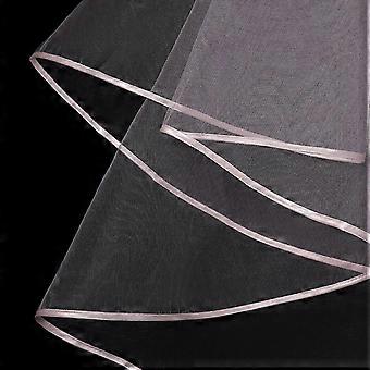 Double Layer Mesh Tulle Solid Color Women Short Wedding Veil with Comb Ribbon Edge Center Cascade Bride Party Headpiece Black