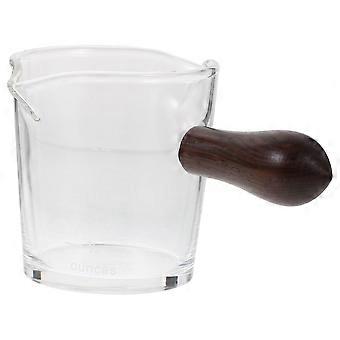 Double Spouts Measuring Cup Mini Milk Coffee Pitcher Home Use Glass Wood 1Set