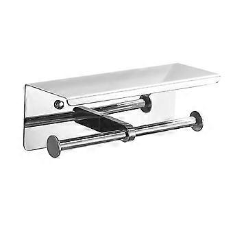 Double Toilet Paper Holder, Wall Mounted With Two Rolls, 304 Stainless Steel Storage Shelf, Toilet Roll Holder With Phone Holder, For Bathroom (silver