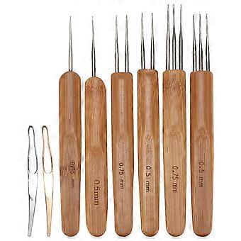 Dreadlock Crochet Hooks Bamboo Handle Reggae Special Multi-Head Knitting Tool for Dirty Braids