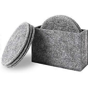 Drink Coasters Set of 8 with Holder - Light Gray Round Water Absorption Felt Mat, Prevent Furniture from Dirty and Scratched, Suitable for Kinds of M
