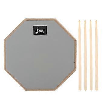Drum Practice Pad 8 Inch Rubber Silent Drum Practice Mat with 2 Pairs of Drumsticks Grey