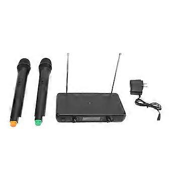 Dual Wireless Microphone System LED Display Receiver VHF Handheld Mic System 110240V US Plug