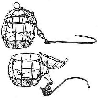 Durable Iron Wire Hanging Bird Feeder with Chain for Outdoor Use Black Color 2pcs