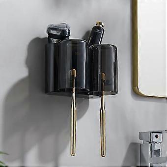 ECOCO Wall Mounted Toothbrush Holder Cup Rack Automatic Toothpaste Dispenser Multi-Functional Bathroom Accessory Organizer Rack