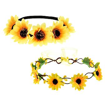 Elastic Sunflower Headband Bohemian Wreath 2pcs