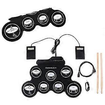 Electronic Drum Set 7 Pads 5 Tunings 8 Demonstration Songs 3 Rhythms Portable USB Roll Up Drum Practice Pad