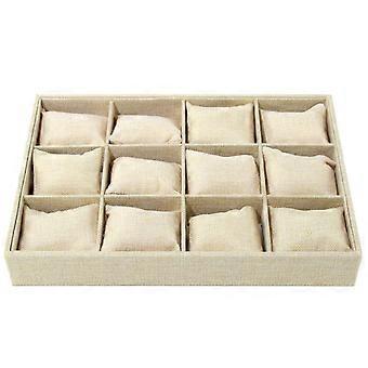 Elegant 12Slot Watch Holder with Cushion, Wristwatch Display Stand, Velvet Watch Presentation Tray, Yellow