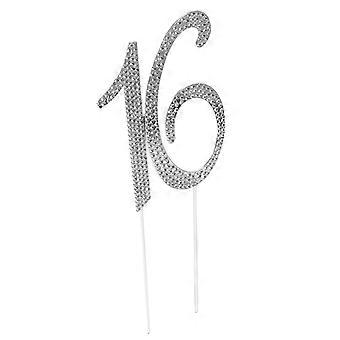 Elegant Silver Alloy Cake Topper with Rhinestones for Birthday or Anniversary Parties 16 Inch