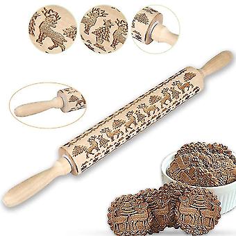 Embossed Wooden Rolling Pin, Engraved Embossing Rolling Pin