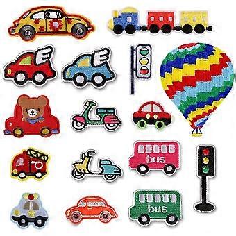 Embroidered DIY accessories for car iron patches (16 piece set), various traffic decoration patches, cute sticker patches for jackets, hats, backpacks