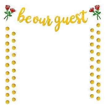 Engagement Rose Decor Banner Be Our Guest Round Piece Hanging Banner for Single Party Engagement Wedding (1 String Roses To Be Our Guest Banner, 2 Str