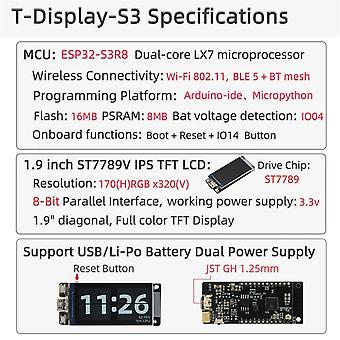 ESP32-S3R8 T-Display-S3 Development Board 1.9 Inch LCD Display WIFI Bluetooth5.0 170x320 Wireless M