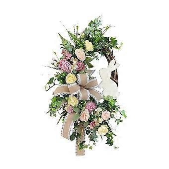 Farmhouse Easter Wreath Burlap Garland with Lights & Bow for Front Door Summer Decor
