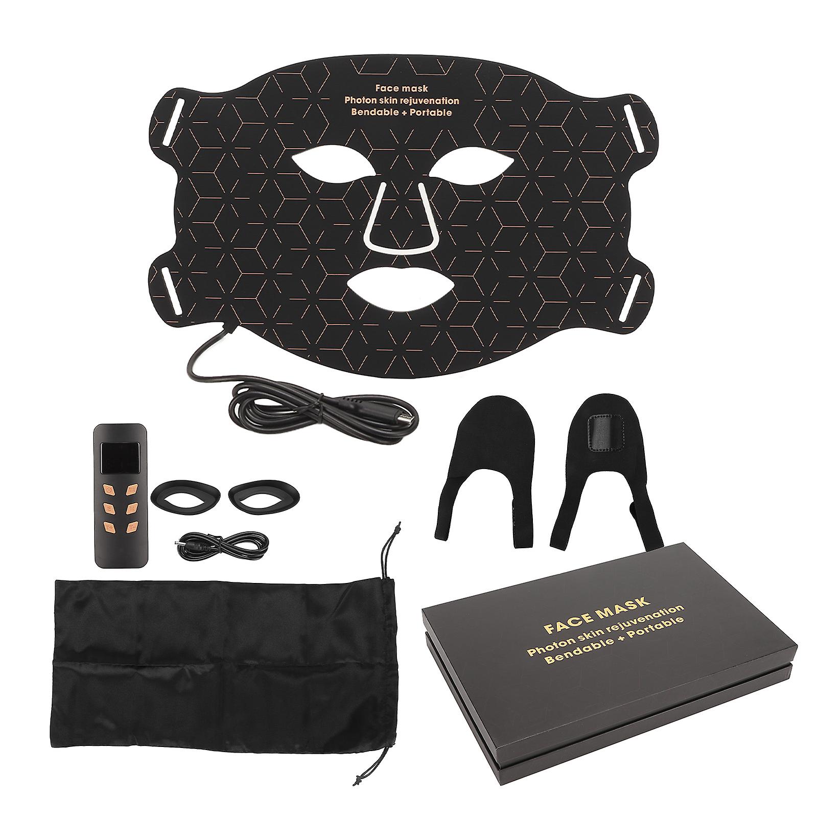 Color Light Skin Care Device Skin Rejuvenation 3 Gears Rechargeable Silicone LED Beauty Face Device Black 4 Ears